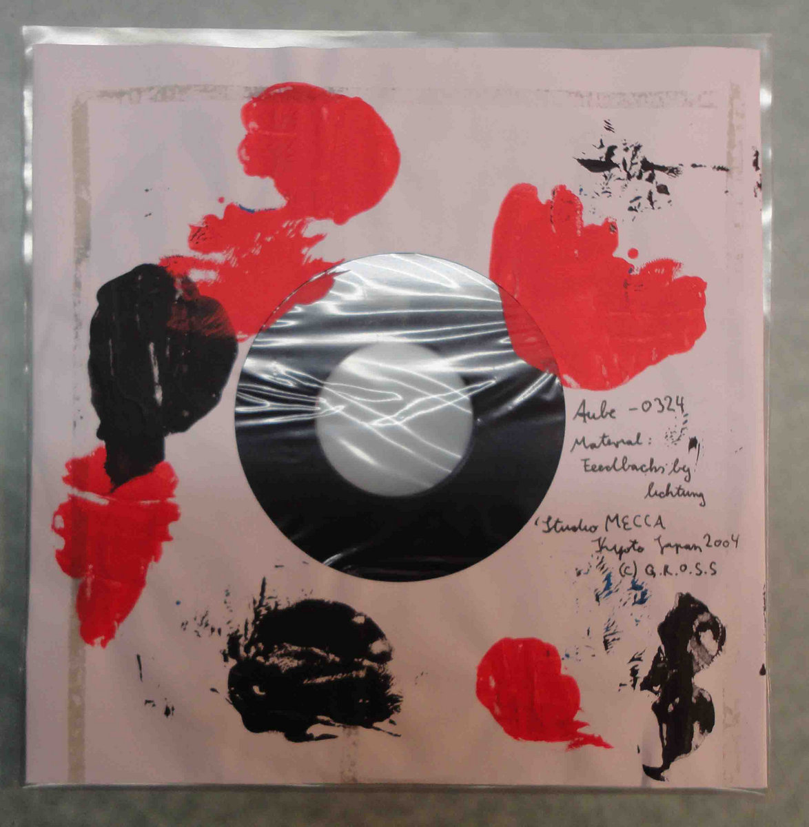 Heavy lathe-cut 7" in hand written & painted sleeve.